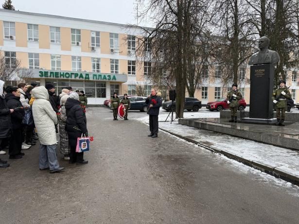 Затем все пришли к памятнику-бюсту Н. А. Злобина (памятник расположен перед зданием бывшего «Зеленоградстроя», где в настоящее время располагается "Зеленоград Плаза"). Там курсанты Военно-патриотического клуба «Юные Панфиловцы имени Г.В. Шевченко» вынесли памятный венок, организовали почётный караул. Почетные гости и курсанты вместе возложили цветы к подножию бюста.