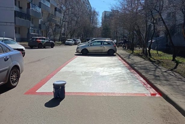В рамках месячника весеннего благоустройства в районе Матушкино были выполнены необходимые работы - обновили разметки для стоянки спецтехники.