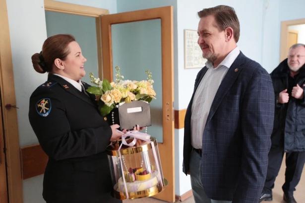 В Москве женщин поздравляли общественные деятели. Так, член Общественной палаты Российской Федерации Александр Асафов приехал к сотрудницам отдела полиции по Левобережному району, которые находились на дежурстве.